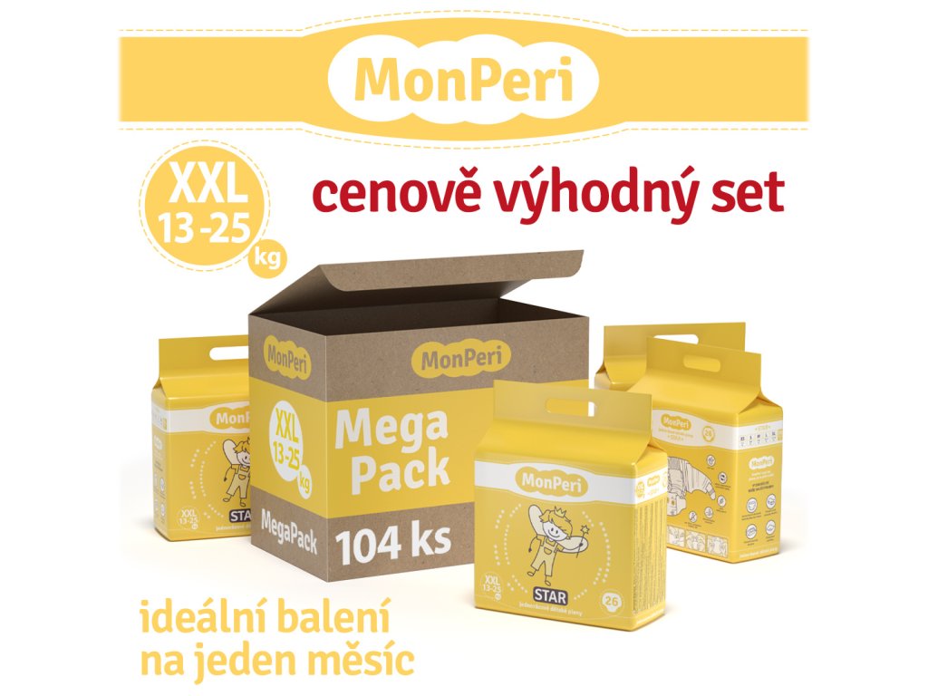 Mega pack MonPeri STAR XXL 13-25kg (104 ks) hypoalergenní jednorázové dětské pleny vel. 6