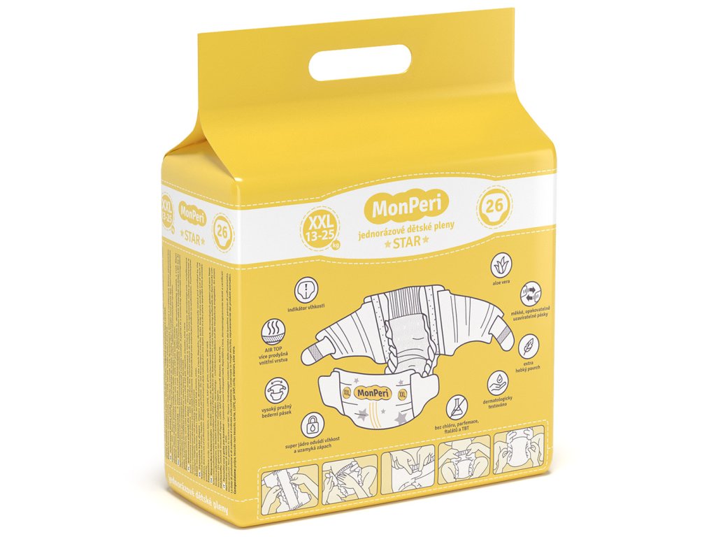 MonPeri STAR XXL 13-25kg (26ks) hypoalergenní jednorázové dětské pleny vel. 6